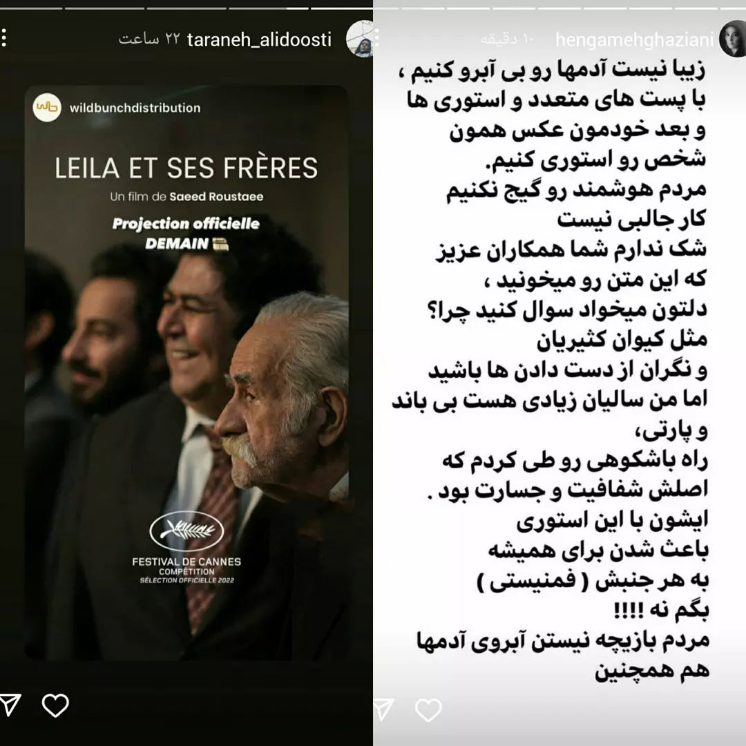 هنگامه قاضیانی خطاب به کرامتی چندین استوری منتشر کرد و نوشت: