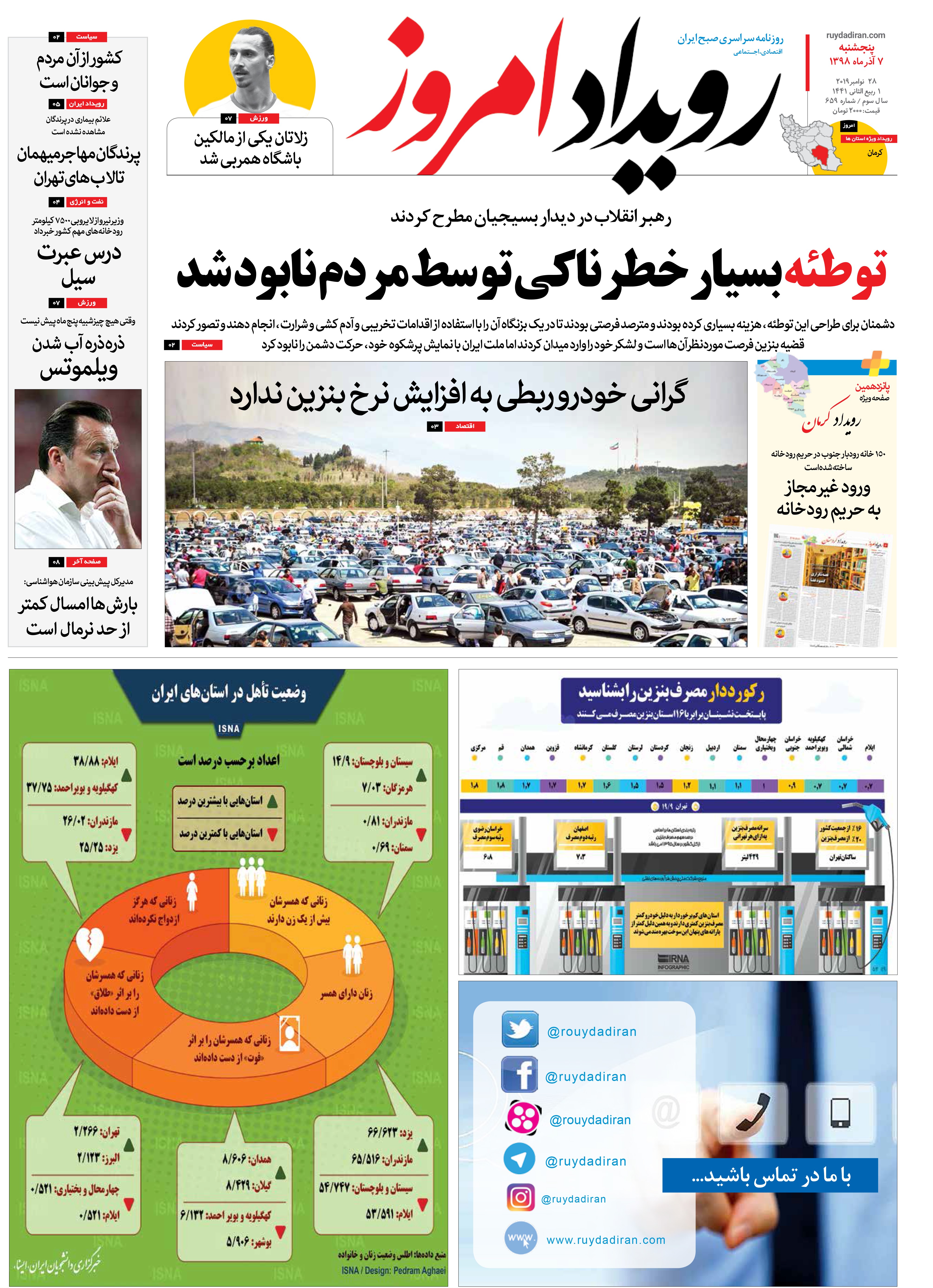 روزنامه رویداد امروز پنج شنبه 7 آذر ۱۳۹۸