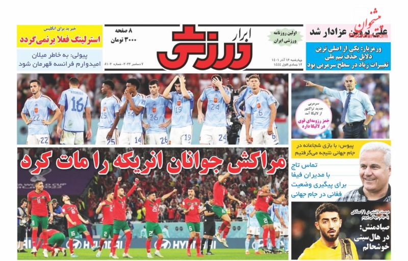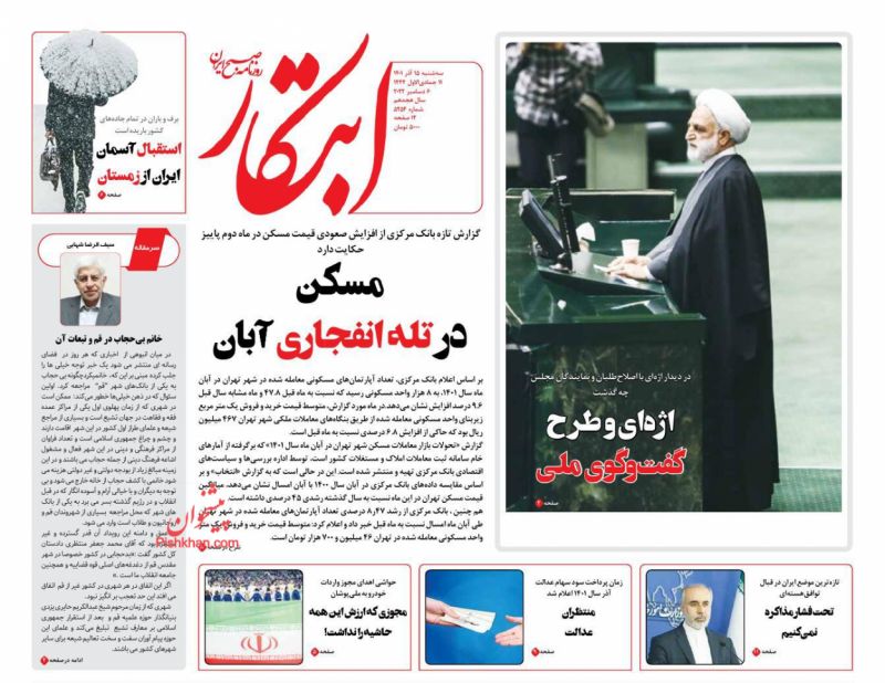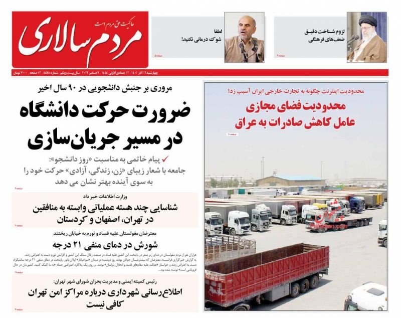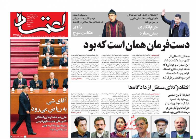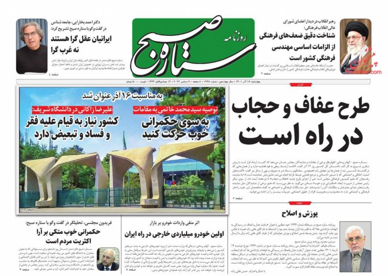 صفحه نخست روزنامه‌های امروز چهارشنبه 16 آذر 1401