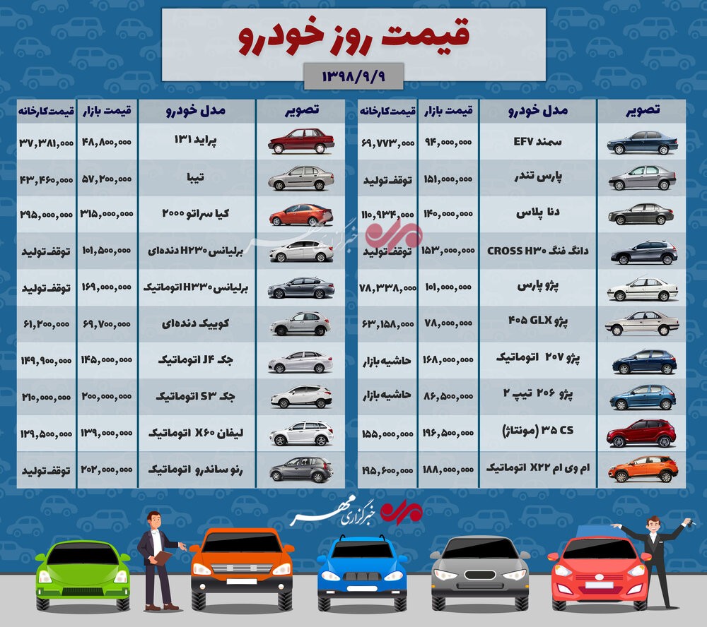 کد: 18111 | 09 آذر 1398 ساعت 14:16 قیمت روز انواع خودرو در اینفوگرافیک زیر قیمت روز خودرو در تاریخ ۹ آذر ماه ۹۸ را میبینید. яндекс قیمت خودرو خودرو بازار خودرو اشتراک گذاری گزارش خطا × اشتراک گذاری مطلب: قیمت روز انواع خودرو فیسبوک اینستاگرام تلگرام ایکس (توییتر) ایتا بله روبیکا × گزارش خطا برای گزارش خطا با پست الکترونیکی: ruydadiran[at]gmail.com در ارتباط باشید