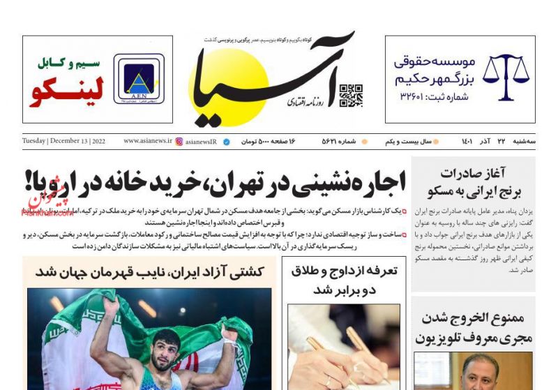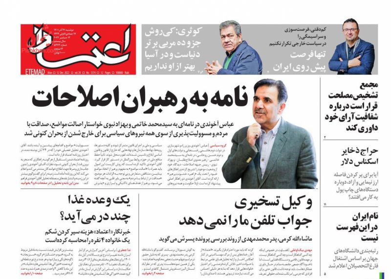 کد: 181326 | 22 آذر 1401 ساعت 06:56 صفحه نخست روزنامههای امروز سه شنبه 22 آذر 1401 صفحه نخست روزنامههای امروز سه شنبه 22 آذر 1401 روزنامه های سراسری مطبوعات کشور روزنامه اشتراک گذاری گزارش خطا × اشتراک گذاری مطلب: صفحه نخست روزنامههای امروز سه شنبه 22 آذر 1401 فیسبوک اینستاگرام تلگرام ایکس (توییتر) ایتا بله روبیکا × گزارش خطا برای گزارش خطا با پست الکترونیکی: ruydadiran[at]gmail.com در ارتباط باشید