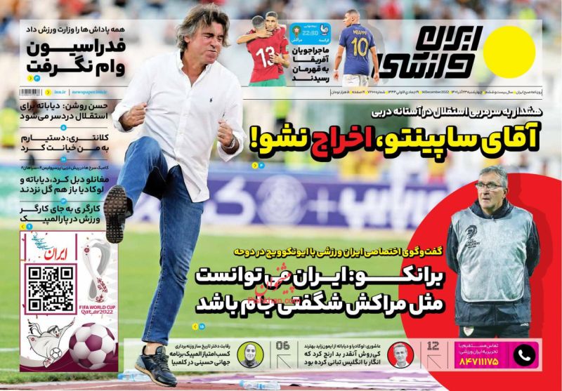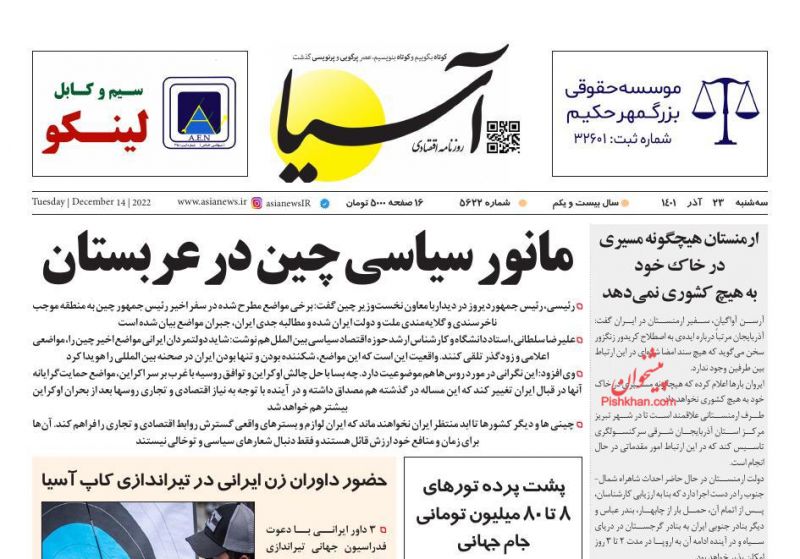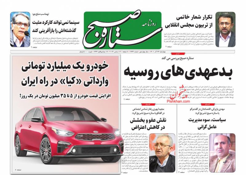کد: 181594 | 23 آذر 1401 ساعت 06:34 صفحه نخست روزنامههای امروز چهار شنبه 23 آذر 1401 صفحه نخست روزنامههای امروز چهار شنبه 23 آذر 1401 روزنامه های سراسری مطبوعات کشور روزنامه اشتراک گذاری گزارش خطا × اشتراک گذاری مطلب: صفحه نخست روزنامههای امروز چهار شنبه 23 آذر 1401 فیسبوک اینستاگرام تلگرام ایکس (توییتر) ایتا بله روبیکا × گزارش خطا برای گزارش خطا با پست الکترونیکی: ruydadiran[at]gmail.com در ارتباط باشید