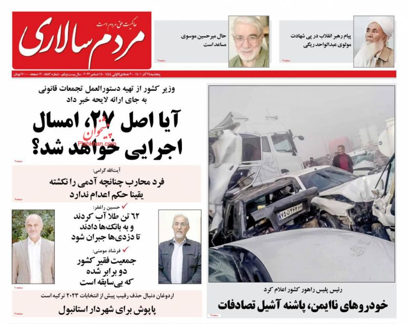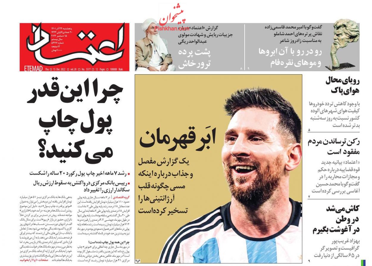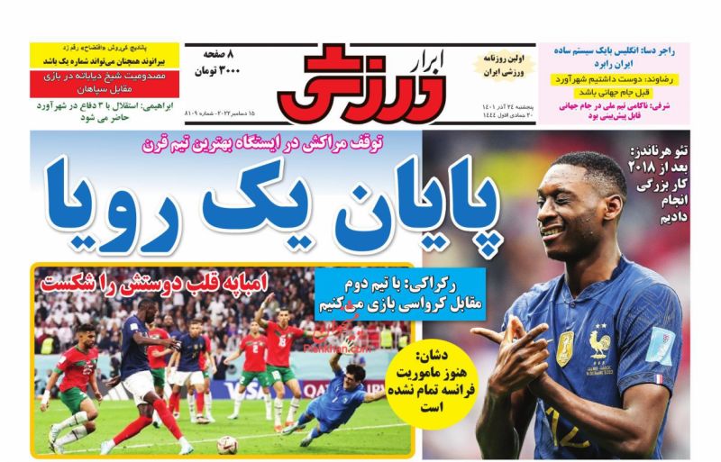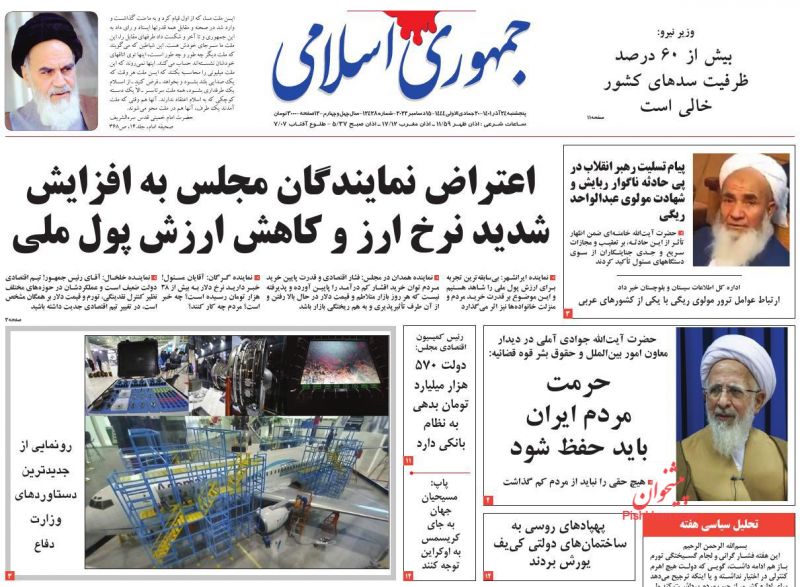 صفحه نخست روزنامه‌های امروز پنجشنبه 24 آذر 1401