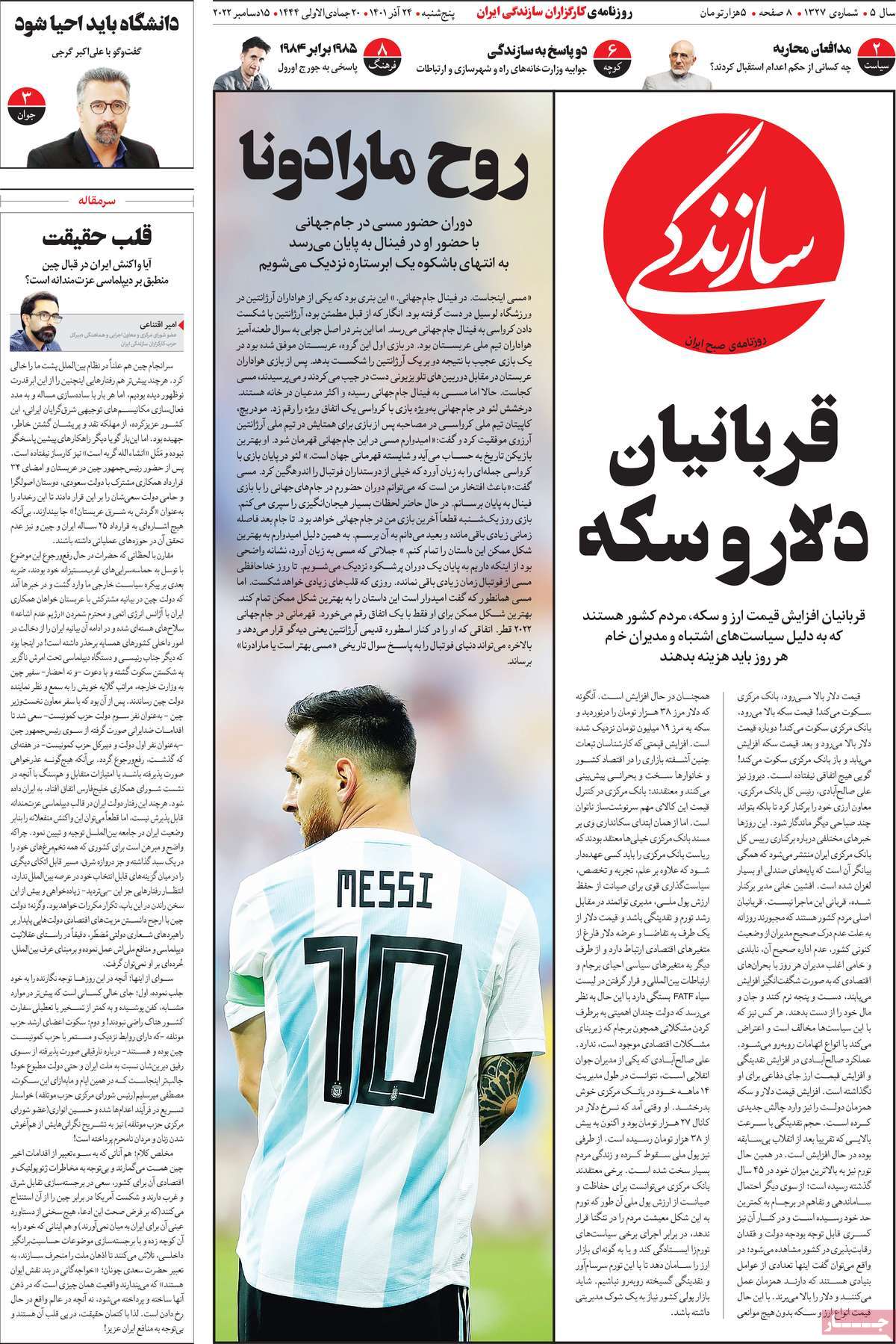 کد: 181865 | 24 آذر 1401 ساعت 06:22 صفحه نخست امروز روزنامه سازندگی صفحه نخست امروز روزنامه سازندگی روزنامه سازندگی روزنامه روزنامه های سراسری مطبوعات کشور اشتراک گذاری گزارش خطا × اشتراک گذاری مطلب: صفحه نخست امروز روزنامه سازندگی فیسبوک اینستاگرام تلگرام ایکس (توییتر) ایتا بله روبیکا × گزارش خطا برای گزارش خطا با پست الکترونیکی: ruydadiran[at]gmail.com در ارتباط باشید