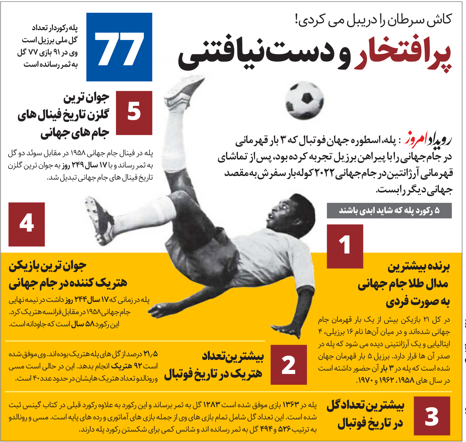 پله، اسطوره جهان فوتبال که 3 بار قهرمانی در جامجهانی را با پیراهن برزیل تجربه کرده بود، پس از تماشای قهرمانی آرژانتین در جامجهانی 2022 کولهبار سفرش به مقصد جهانی دیگر را بست.