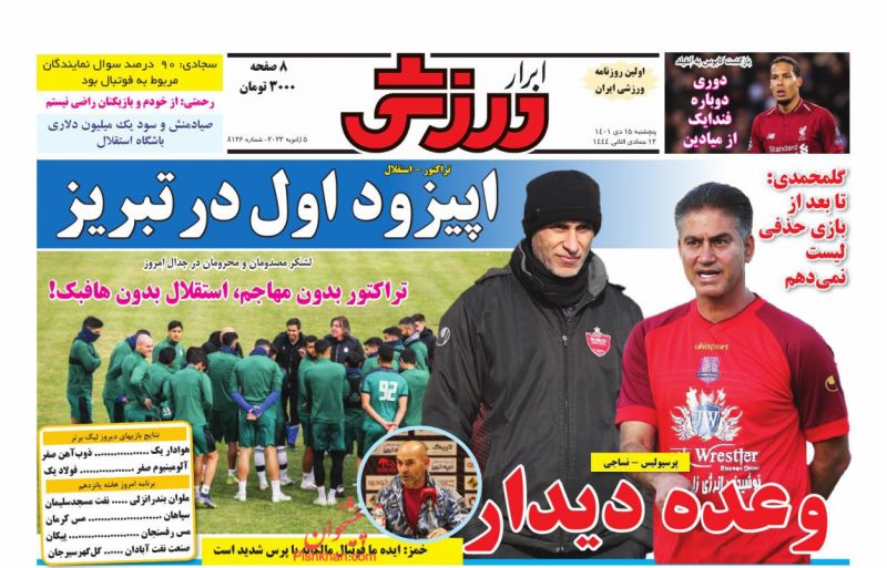 صفحه نخست روزنامه‌های امروز پنجشنبه 15 دی 1401