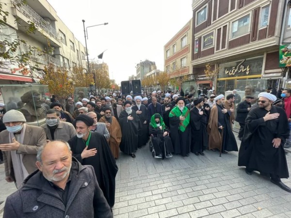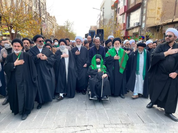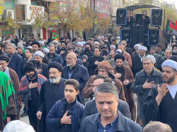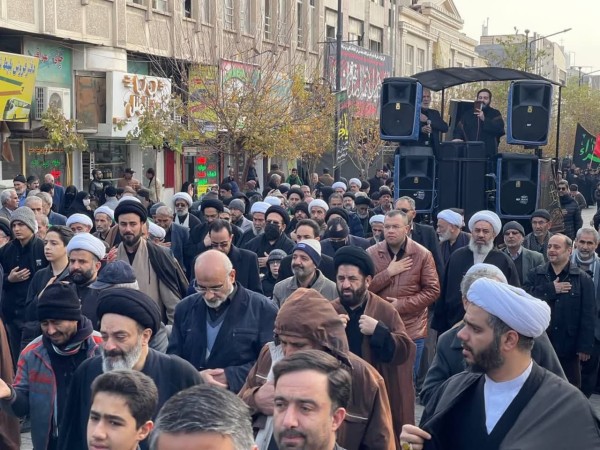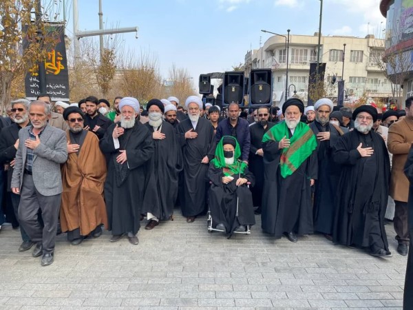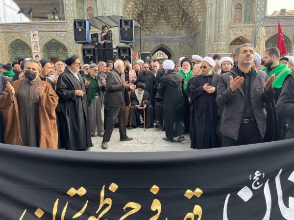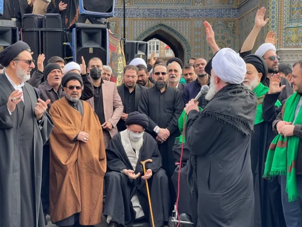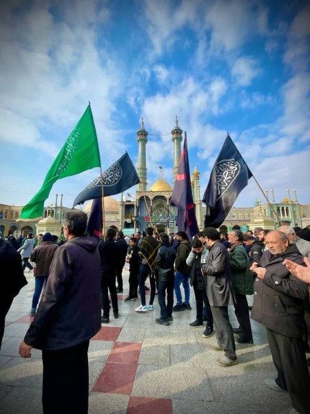 حرکت دسته عزاداری بیت الله گلپایگانی و مدرسه امام المهدی (عج) به سوی حرم حضرت معصومه (س)