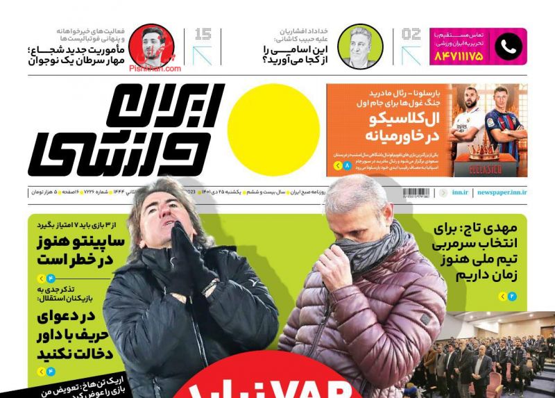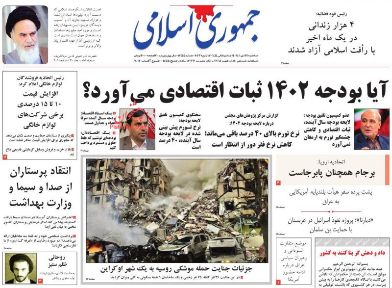 صفحه نخست روزنامه‌های امروز سه شنبه 27 دی 1401