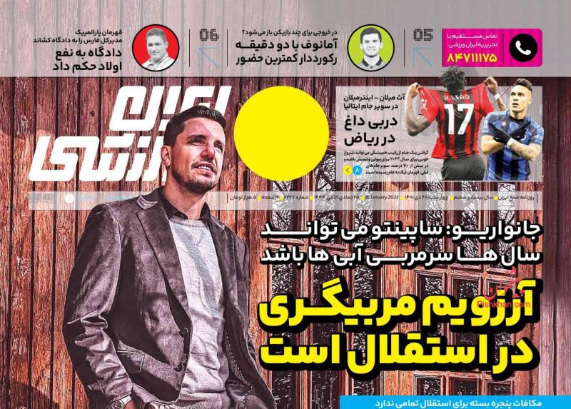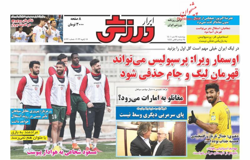 کد: 189910 | 28 دی 1401 ساعت 06:25 صفحه نخست روزنامههای امروز چهارشنبه 28 دی 1401 صفحه نخست روزنامههای امروز چهارشنبه 28 دی 1401 روزنامه های سراسری مطبوعات کشور روزنامه اشتراک گذاری گزارش خطا × اشتراک گذاری مطلب: صفحه نخست روزنامههای امروز چهارشنبه 28 دی 1401 فیسبوک اینستاگرام تلگرام ایکس (توییتر) ایتا بله روبیکا × گزارش خطا برای گزارش خطا با پست الکترونیکی: ruydadiran[at]gmail.com در ارتباط باشید