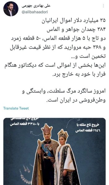 مستندساز و فعال رسانه ای در پاسخ به ادعای سخنگوی پیرامون خروج کل جواهرات سلطنتی توسط خاندان پهلوی از ایران در زمان اقلاب 57 نوشت:
