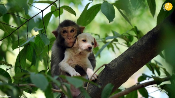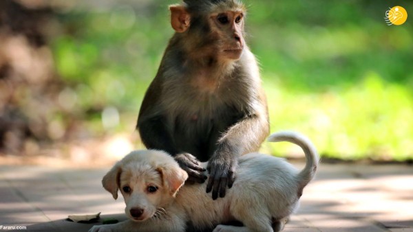 اگرچه میمونها و سگها لزوماً با هم پیوند ندارند، اما تصاویر متفاوتی در پارک رامنا داکا پایتخت بنگلادش از این دو حیوان ثبت شده است.