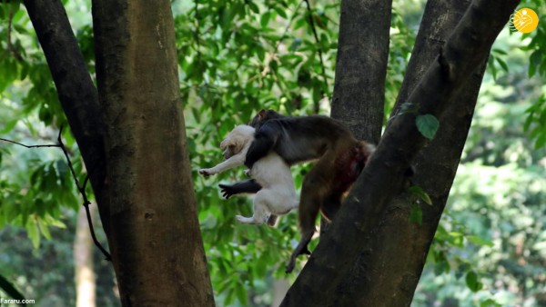 به گزارش فرارو، در تصاویری که مهدی حسن گرفته یک میمون در حال حمل یک سگ در پارک دیده شد.
