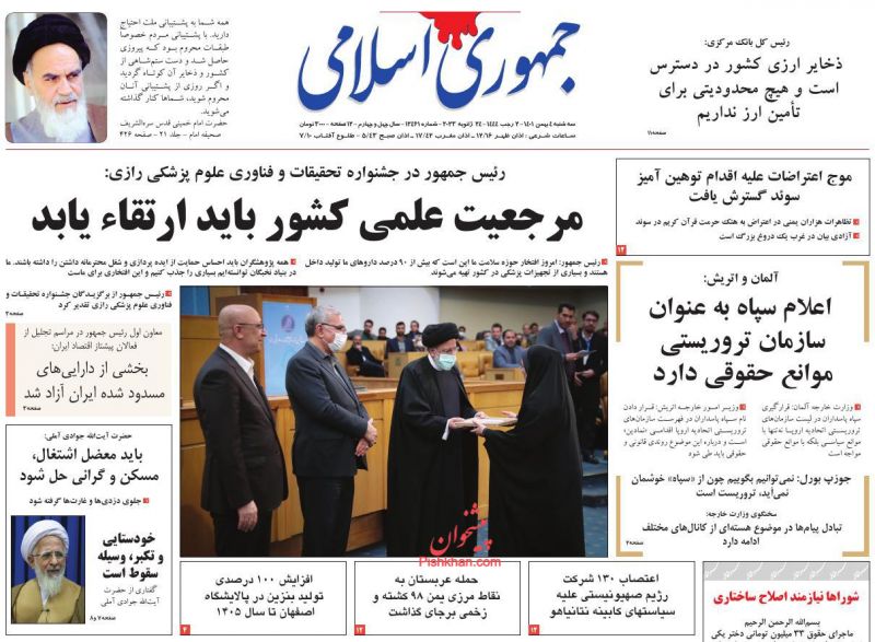 کد: 191307 | 05 بهمن 1401 ساعت 06:31 صفحه نخست روزنامههای امروز چهارشنبه 5 بهمن 1401 صفحه نخست روزنامههای امروز چهارشنبه 5 بهمن 1401 روزنامه های سراسری مطبوعات کشور روزنامه اشتراک گذاری گزارش خطا × اشتراک گذاری مطلب: صفحه نخست روزنامههای امروز چهارشنبه 5 بهمن 1401 فیسبوک اینستاگرام تلگرام ایکس (توییتر) ایتا بله روبیکا × گزارش خطا برای گزارش خطا با پست الکترونیکی: ruydadiran[at]gmail.com در ارتباط باشید