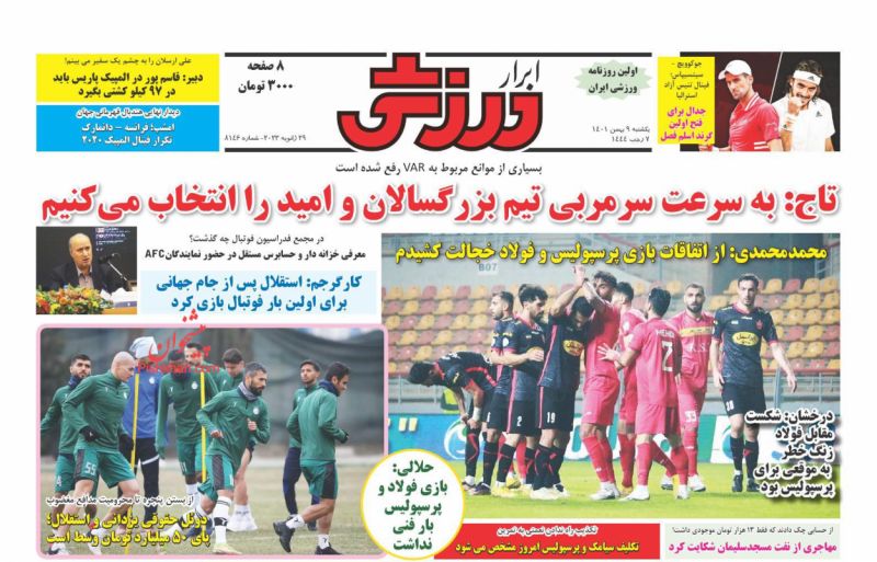 کد: 192048 | 09 بهمن 1401 ساعت 06:39 صفحه نخست روزنامههای امروز یکشنبه 9 بهمن 1401 صفحه نخست روزنامههای امروز یکشنبه 9 بهمن 1401 روزنامه های سراسری مطبوعات کشور روزنامه اشتراک گذاری گزارش خطا × اشتراک گذاری مطلب: صفحه نخست روزنامههای امروز یکشنبه 9 بهمن 1401 فیسبوک اینستاگرام تلگرام ایکس (توییتر) ایتا بله روبیکا × گزارش خطا برای گزارش خطا با پست الکترونیکی: ruydadiran[at]gmail.com در ارتباط باشید