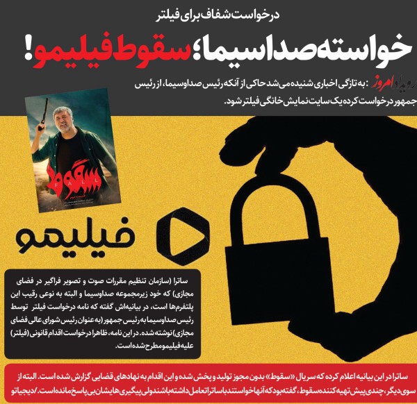 به تازگی اخباری شنیده میشد حاکی از آنکه رئیس صداوسیما، از رئیس جمهور درخواست کرده یک سایت نمایش خانگی فیلتر شود.