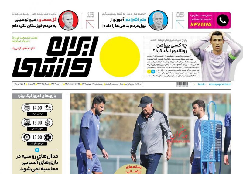 کد: 192808 | 12 بهمن 1401 ساعت 06:47 صفحه نخست روزنامههای امروز چهار شنبه12 بهمن 1401 صفحه نخست روزنامههای امروز چهار شنبه12 بهمن 1401 روزنامه های سراسری مطبوعات کشور روزنامه اشتراک گذاری گزارش خطا × اشتراک گذاری مطلب: صفحه نخست روزنامههای امروز چهار شنبه12 بهمن 1401 فیسبوک اینستاگرام تلگرام ایکس (توییتر) ایتا بله روبیکا × گزارش خطا برای گزارش خطا با پست الکترونیکی: ruydadiran[at]gmail.com در ارتباط باشید