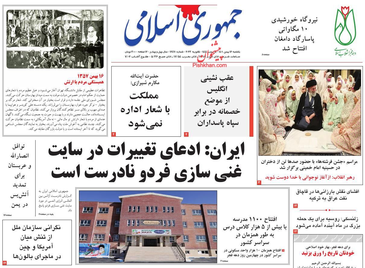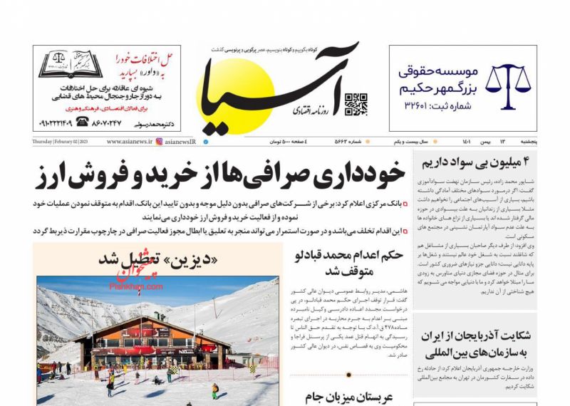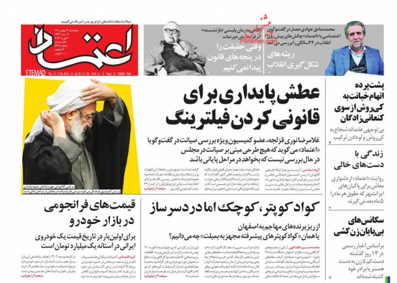 صفحه نخست روزنامه‌های امروز یکشنبه16 بهمن 1401