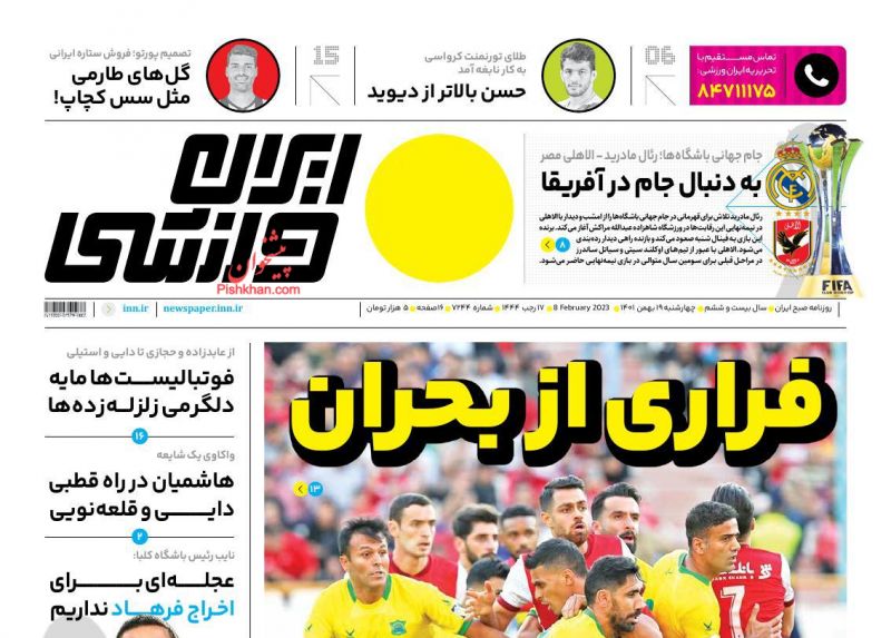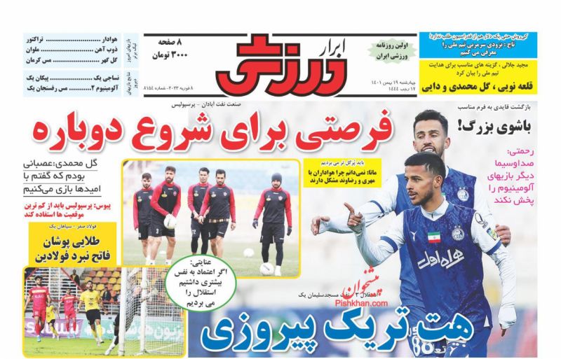 کد: 194240 | 19 بهمن 1401 ساعت 06:30 صفحه نخست روزنامههای امروز چهارشنبه 19 بهمن ۱۴۰۱ صفحه نخست روزنامههای امروز چهارشنبه 19 بهمن ۱۴۰۱ روزنامه های سراسری مطبوعات کشور روزنامه اشتراک گذاری گزارش خطا × اشتراک گذاری مطلب: صفحه نخست روزنامههای امروز چهارشنبه 19 بهمن ۱۴۰۱ فیسبوک اینستاگرام تلگرام ایکس (توییتر) ایتا بله روبیکا × گزارش خطا برای گزارش خطا با پست الکترونیکی: ruydadiran[at]gmail.com در ارتباط باشید
