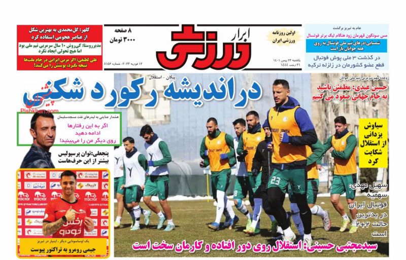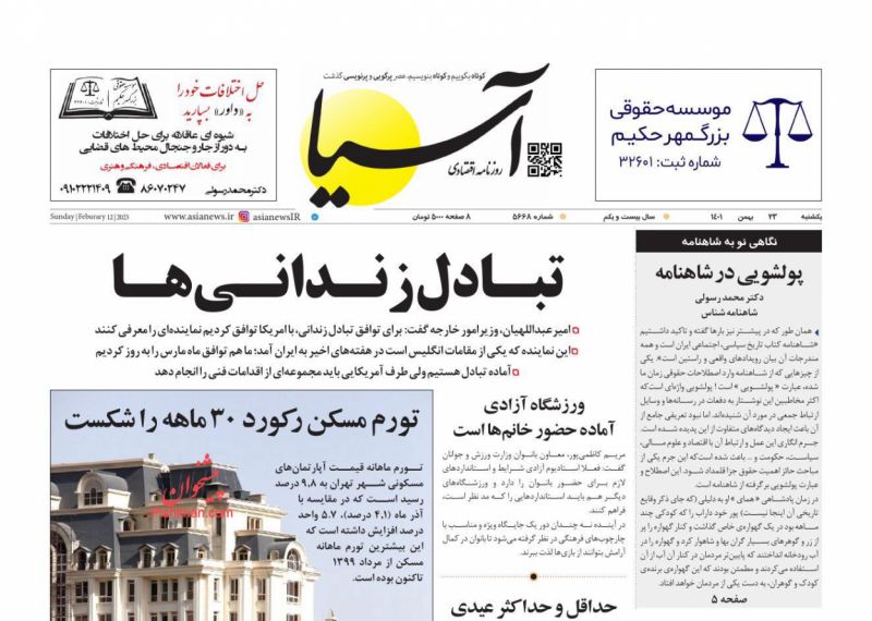 کد: 194752 | 23 بهمن 1401 ساعت 06:38 صفحه نخست روزنامههای امروز یکشنبه 23 بهمن ۱۴۰۱ صفحه نخست روزنامههای امروز یکشنبه 23 بهمن ۱۴۰۱ روزنامه های سراسری مطبوعات کشور روزنامه اشتراک گذاری گزارش خطا × اشتراک گذاری مطلب: صفحه نخست روزنامههای امروز یکشنبه 23 بهمن ۱۴۰۱ فیسبوک اینستاگرام تلگرام ایکس (توییتر) ایتا بله روبیکا × گزارش خطا برای گزارش خطا با پست الکترونیکی: ruydadiran[at]gmail.com در ارتباط باشید