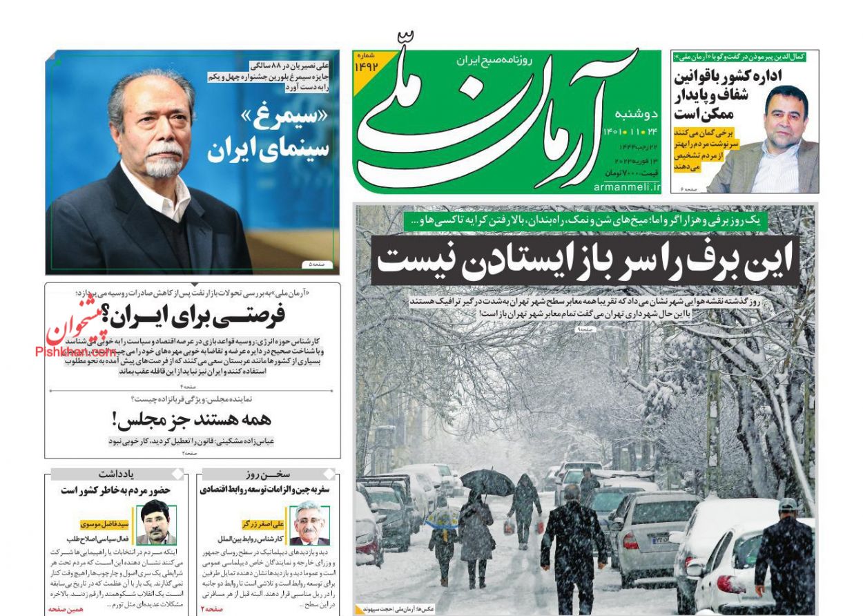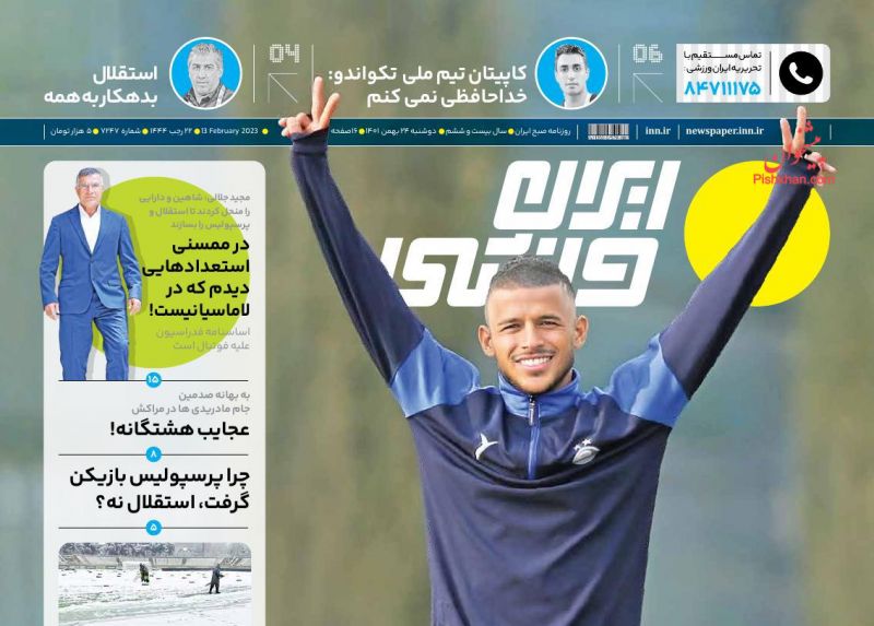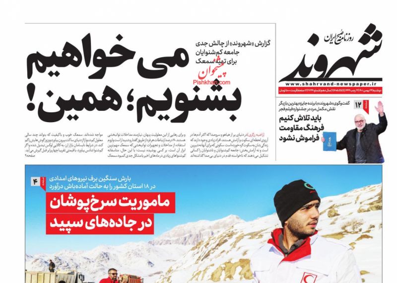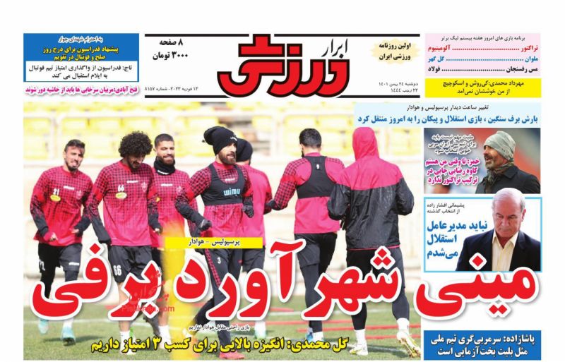 کد: 195183 | 24 بهمن 1401 ساعت 06:44 صفحه نخست روزنامههای امروز دوشنبه 24 بهمن ۱۴۰۱ صفحه نخست روزنامههای امروز دوشنبه 24 بهمن ۱۴۰۱ روزنامه های سراسری مطبوعات کشور روزنامه اشتراک گذاری گزارش خطا × اشتراک گذاری مطلب: صفحه نخست روزنامههای امروز دوشنبه 24 بهمن ۱۴۰۱ فیسبوک اینستاگرام تلگرام ایکس (توییتر) ایتا بله روبیکا × گزارش خطا برای گزارش خطا با پست الکترونیکی: ruydadiran[at]gmail.com در ارتباط باشید