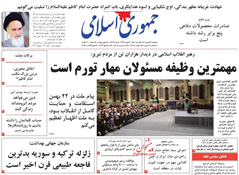 صفحه نخست روزنامه‌های امروز یکشنبه 30 بهمن ۱۴۰۱