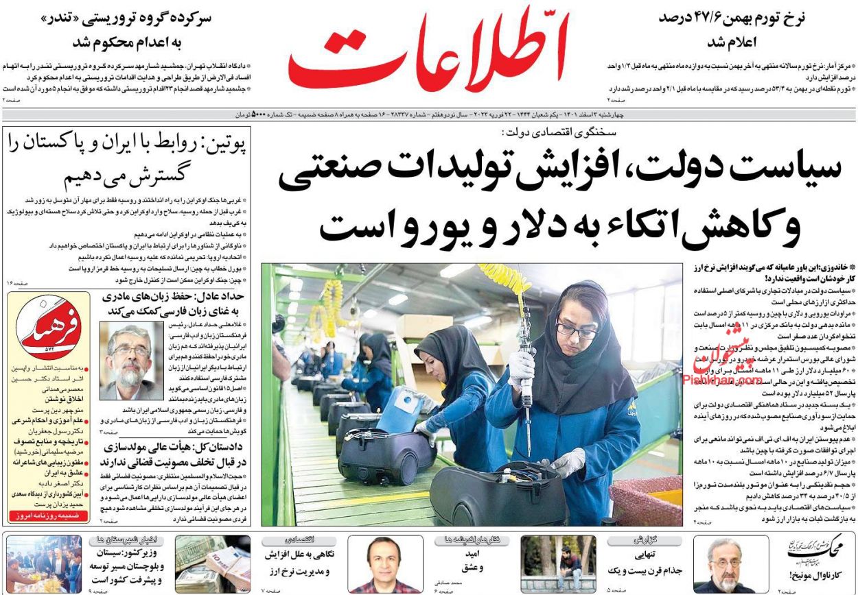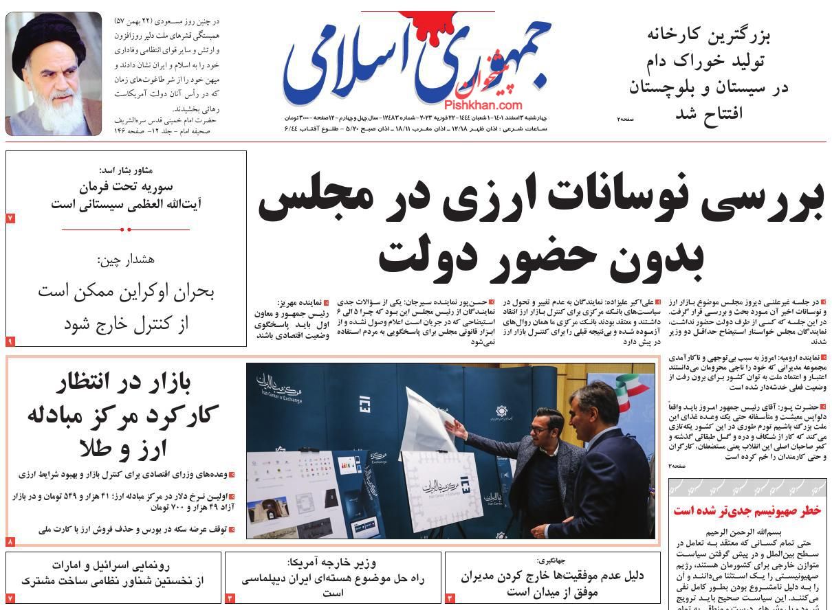 صفحه نخست روزنامه‌های امروز چهارشنبه 3 اسفند ۱۴۰۱