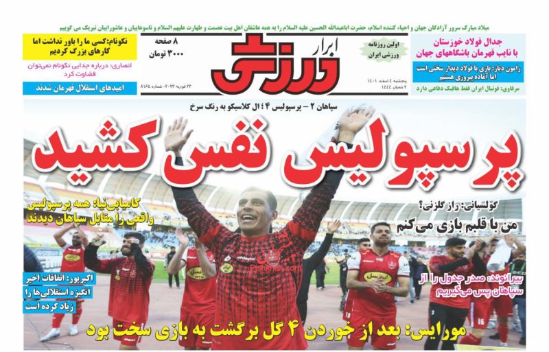 کد: 197425 | 04 اسفند 1401 ساعت 06:47 صفحه نخست روزنامههای امروز پنجشنبه 4 اسفند ۱۴۰۱ صفحه نخست روزنامههای امروز پنجشنبه 4 اسفند ۱۴۰۱ روزنامه های سراسری مطبوعات کشور روزنامه اشتراک گذاری گزارش خطا × اشتراک گذاری مطلب: صفحه نخست روزنامههای امروز پنجشنبه 4 اسفند ۱۴۰۱ فیسبوک اینستاگرام تلگرام ایکس (توییتر) ایتا بله روبیکا × گزارش خطا برای گزارش خطا با پست الکترونیکی: ruydadiran[at]gmail.com در ارتباط باشید