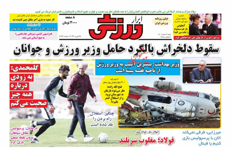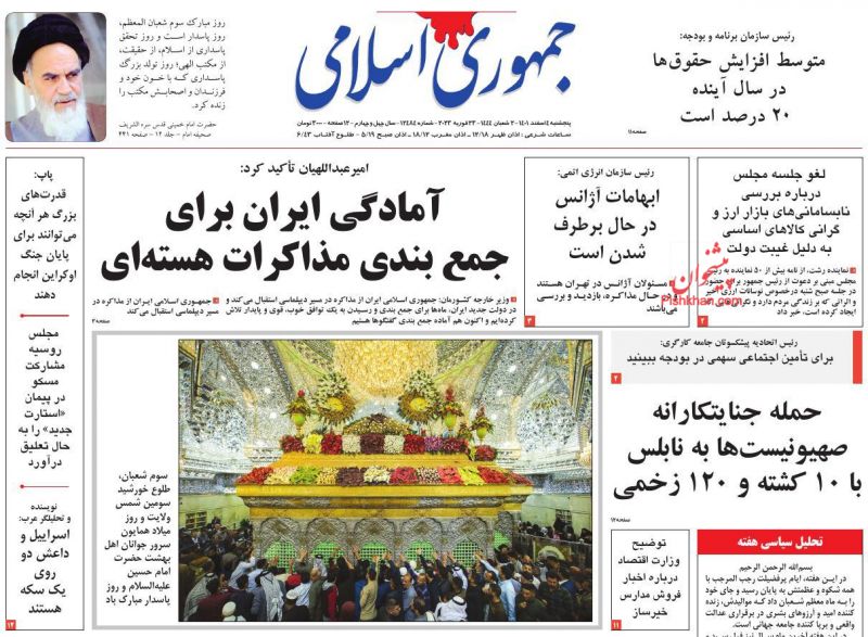 کد: 197694 | 06 اسفند 1401 ساعت 06:36 صفحه نخست روزنامههای امروز شنبه 6 اسفند ۱۴۰۱ صفحه نخست روزنامههای امروز شنبه 6 اسفند ۱۴۰۱ روزنامه های سراسری مطبوعات کشور روزنامه اشتراک گذاری گزارش خطا × اشتراک گذاری مطلب: صفحه نخست روزنامههای امروز شنبه 6 اسفند ۱۴۰۱ فیسبوک اینستاگرام تلگرام ایکس (توییتر) ایتا بله روبیکا × گزارش خطا برای گزارش خطا با پست الکترونیکی: ruydadiran[at]gmail.com در ارتباط باشید