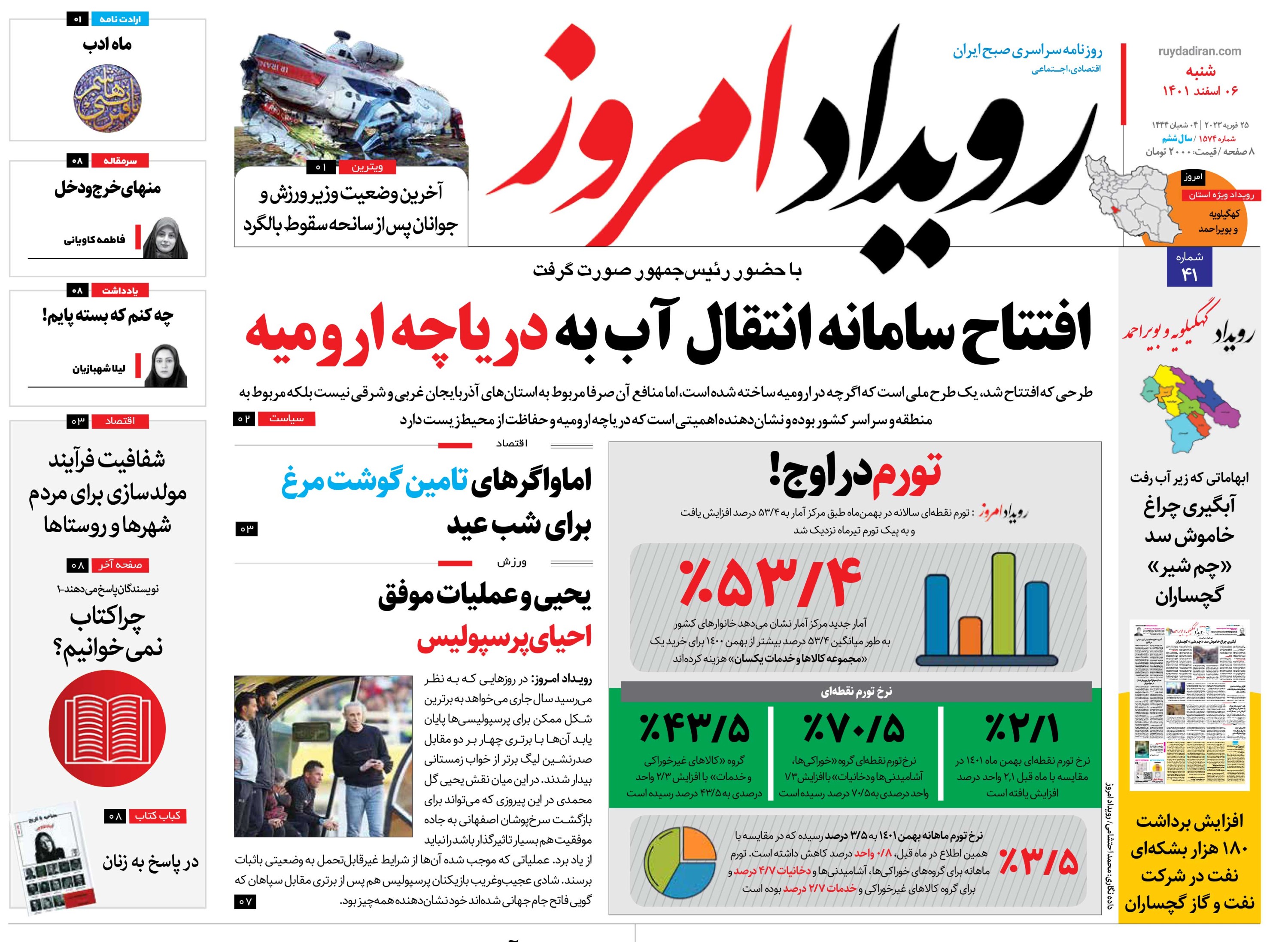 روزنامه رویداد امروز شنبه ۶ اسفند ۱۴۰۱