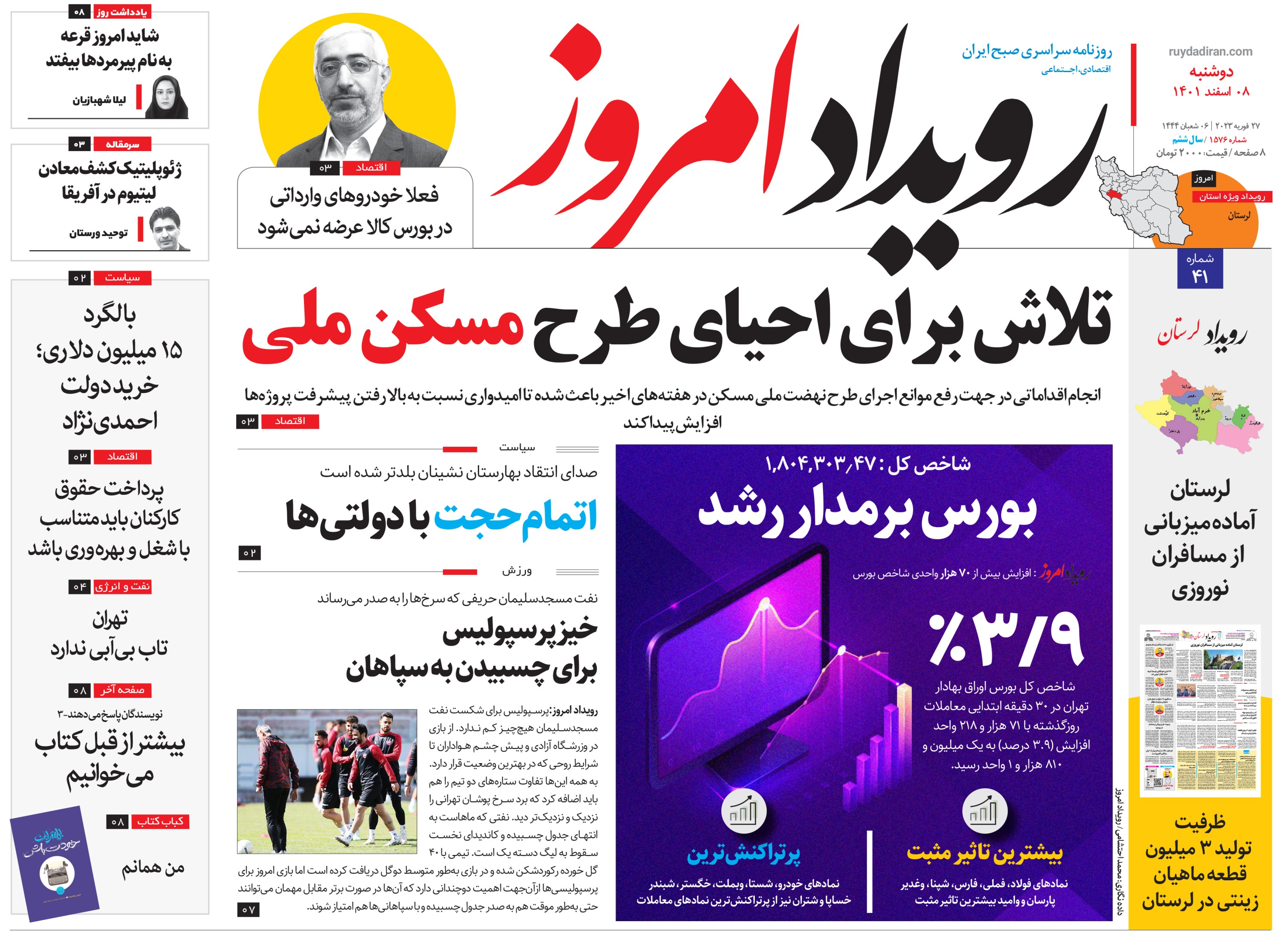 روزنامه رویداد امروز دوشنبه ۸ اسفند ۱۴۰۱