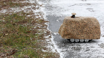پریسا عباسی- در زیر برف ملایمی که در حال بارش است، سربازی یک سنگ را روی زمین می‌گذارد. چند لحظه بعد سنگ شروع به حرکت می‌کند. ابتدا دوربینی که بیشتر شبیه تلسکوپ است از آن بیرون می‌آید و سپس کل سنگ کمی از زمین فاصله می‌گیرد و مجموعه‌ کوچکی از ردیاب‌ها آشکار می‌شوند. این سنگ که در واقع رباتی کوچک است، مانند یک تانک روی خاکریزهای یخ زده پیاده نظام حرکت می‌کند و بالا و پایین می‌رود. به محض اینکه این سنگ در جای مناسب خود قرار گرفت، بدنه سنگ پایین می‌آید و تنها دوربین آن بیرون می‌ماند تا اطراف را زیر نظر بگیرد.