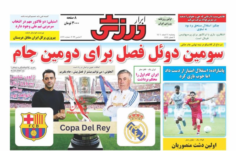 کد: 199013 | 11 اسفند 1401 ساعت 06:48 صفحه نخست روزنامههای امروز پنجشنبه 11 اسفند ۱۴۰۱ صفحه نخست روزنامههای امروز پنجشنبه 11 اسفند ۱۴۰۱ روزنامه های سراسری مطبوعات کشور روزنامه اشتراک گذاری گزارش خطا × اشتراک گذاری مطلب: صفحه نخست روزنامههای امروز پنجشنبه 11 اسفند ۱۴۰۱ فیسبوک اینستاگرام تلگرام ایکس (توییتر) ایتا بله روبیکا × گزارش خطا برای گزارش خطا با پست الکترونیکی: ruydadiran[at]gmail.com در ارتباط باشید