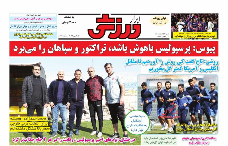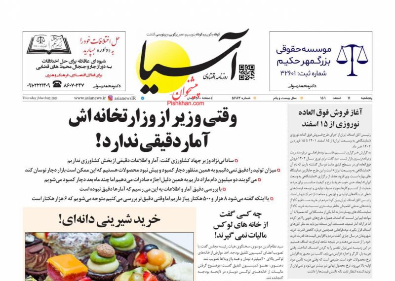 کد: 199260 | 13 اسفند 1401 ساعت 06:49 صفحه نخست روزنامههای امروز شنبه 13 اسفند ۱۴۰۱ صفحه نخست روزنامههای امروز شنبه 13 اسفند ۱۴۰۱ روزنامه های سراسری مطبوعات کشور روزنامه اشتراک گذاری گزارش خطا × اشتراک گذاری مطلب: صفحه نخست روزنامههای امروز شنبه 13 اسفند ۱۴۰۱ فیسبوک اینستاگرام تلگرام ایکس (توییتر) ایتا بله روبیکا × گزارش خطا برای گزارش خطا با پست الکترونیکی: ruydadiran[at]gmail.com در ارتباط باشید