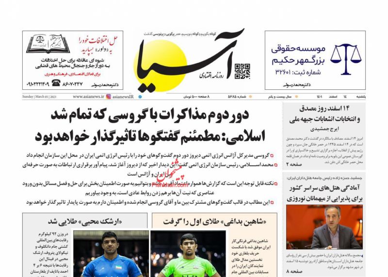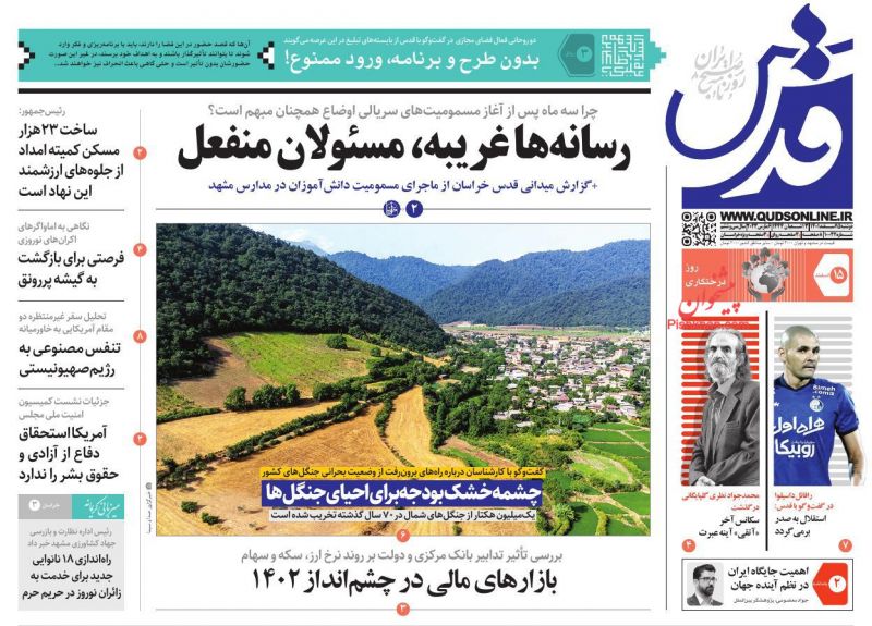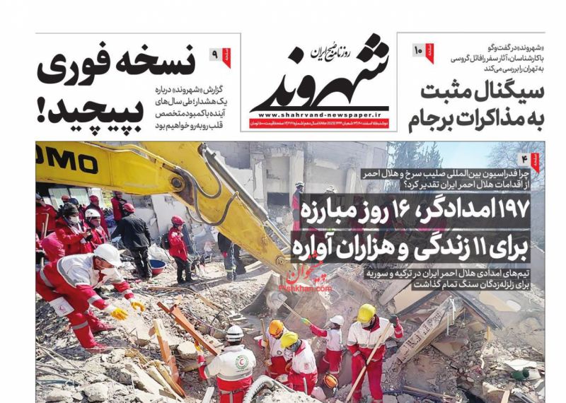 کد: 199773 | 15 اسفند 1401 ساعت 06:49 صفحه نخست روزنامههای امروز دوشنبه 15 اسفند ۱۴۰۱ صفحه نخست روزنامههای امروز دوشنبه 15 اسفند ۱۴۰۱ روزنامه های سراسری مطبوعات کشور روزنامه اشتراک گذاری گزارش خطا × اشتراک گذاری مطلب: صفحه نخست روزنامههای امروز دوشنبه 15 اسفند ۱۴۰۱ فیسبوک اینستاگرام تلگرام ایکس (توییتر) ایتا بله روبیکا × گزارش خطا برای گزارش خطا با پست الکترونیکی: ruydadiran[at]gmail.com در ارتباط باشید