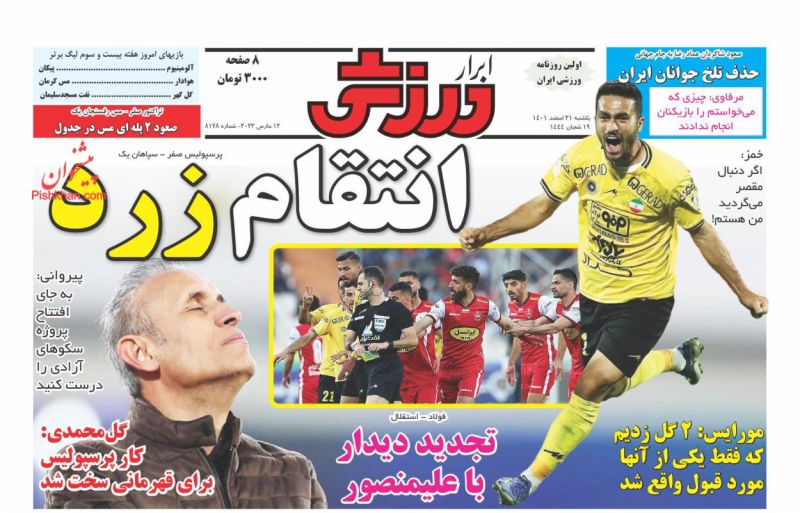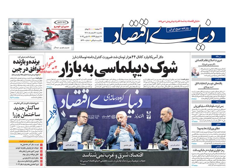 کد: 200972 | 21 اسفند 1401 ساعت 06:30 صفحه نخست روزنامههای امروز یکشنبه 21 اسفند ۱۴۰۱ صفحه نخست روزنامههای امروز یکشنبه 21 اسفند ۱۴۰۱ روزنامه های سراسری مطبوعات کشور روزنامه اشتراک گذاری گزارش خطا × اشتراک گذاری مطلب: صفحه نخست روزنامههای امروز یکشنبه 21 اسفند ۱۴۰۱ فیسبوک اینستاگرام تلگرام ایکس (توییتر) ایتا بله روبیکا × گزارش خطا برای گزارش خطا با پست الکترونیکی: ruydadiran[at]gmail.com در ارتباط باشید
