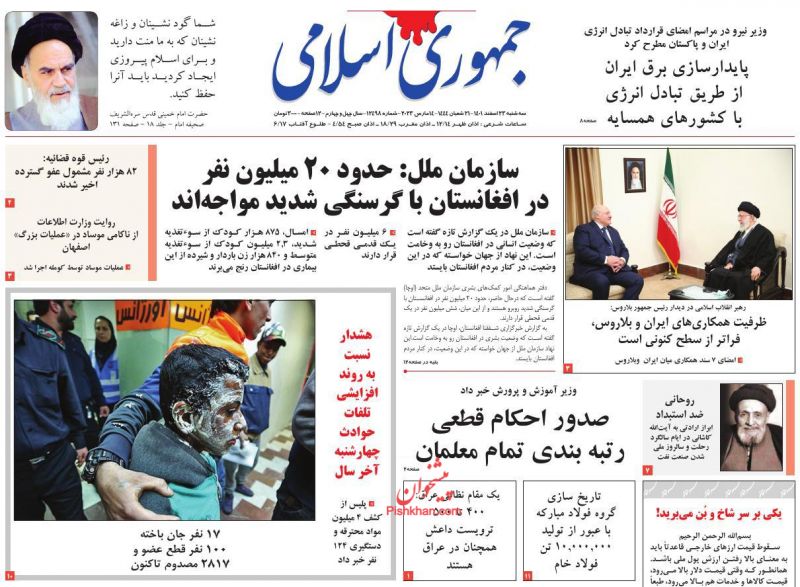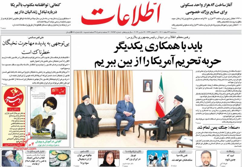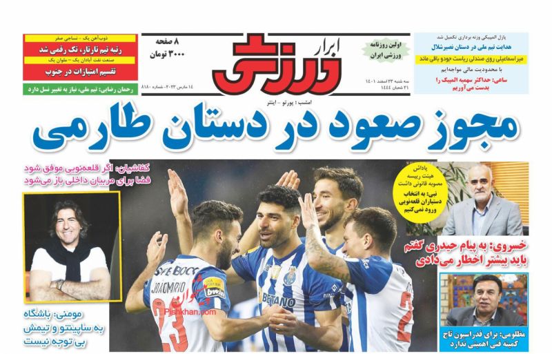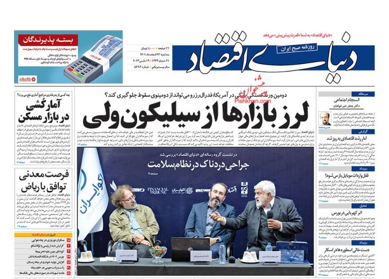کد: 201506 | 23 اسفند 1401 ساعت 06:26 صفحه نخست روزنامههای امروز سه شنبه 23 اسفند ۱۴۰۱ صفحه نخست روزنامههای امروز سه شنبه 23 اسفند ۱۴۰۱ روزنامه های سراسری مطبوعات کشور روزنامه اشتراک گذاری گزارش خطا × اشتراک گذاری مطلب: صفحه نخست روزنامههای امروز سه شنبه 23 اسفند ۱۴۰۱ فیسبوک اینستاگرام تلگرام ایکس (توییتر) ایتا بله روبیکا × گزارش خطا برای گزارش خطا با پست الکترونیکی: ruydadiran[at]gmail.com در ارتباط باشید