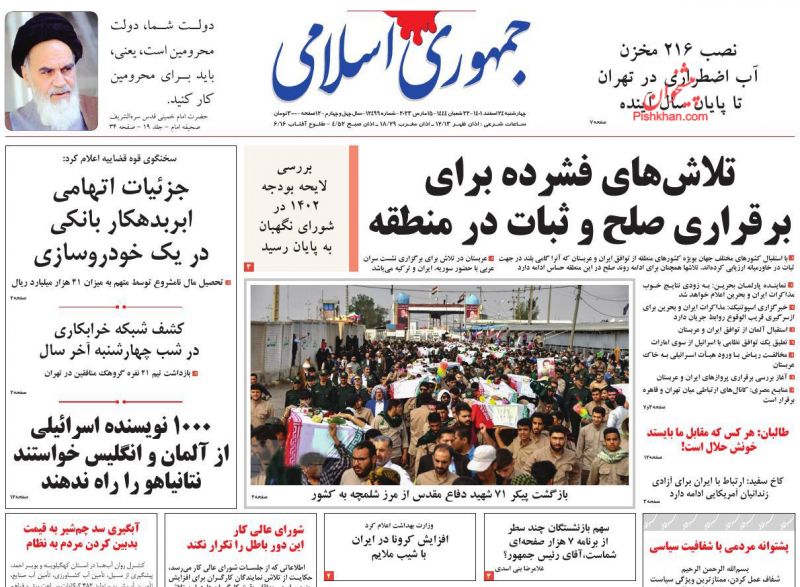 کد: 201757 | 24 اسفند 1401 ساعت 06:36 صفحه نخست روزنامههای امروز چهارشنبه 24 اسفند ۱۴۰۱ صفحه نخست روزنامههای امروزچهار شنبه 24 اسفند ۱۴۰۱ روزنامه های سراسری مطبوعات کشور روزنامه اشتراک گذاری گزارش خطا × اشتراک گذاری مطلب: صفحه نخست روزنامههای امروز چهارشنبه 24 اسفند ۱۴۰۱ فیسبوک اینستاگرام تلگرام ایکس (توییتر) ایتا بله روبیکا × گزارش خطا برای گزارش خطا با پست الکترونیکی: ruydadiran[at]gmail.com در ارتباط باشید