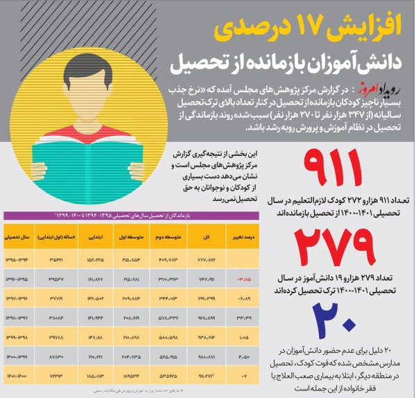 افزایش ۱۷ درصدی دانشآموزان بازمانده از تحصیل