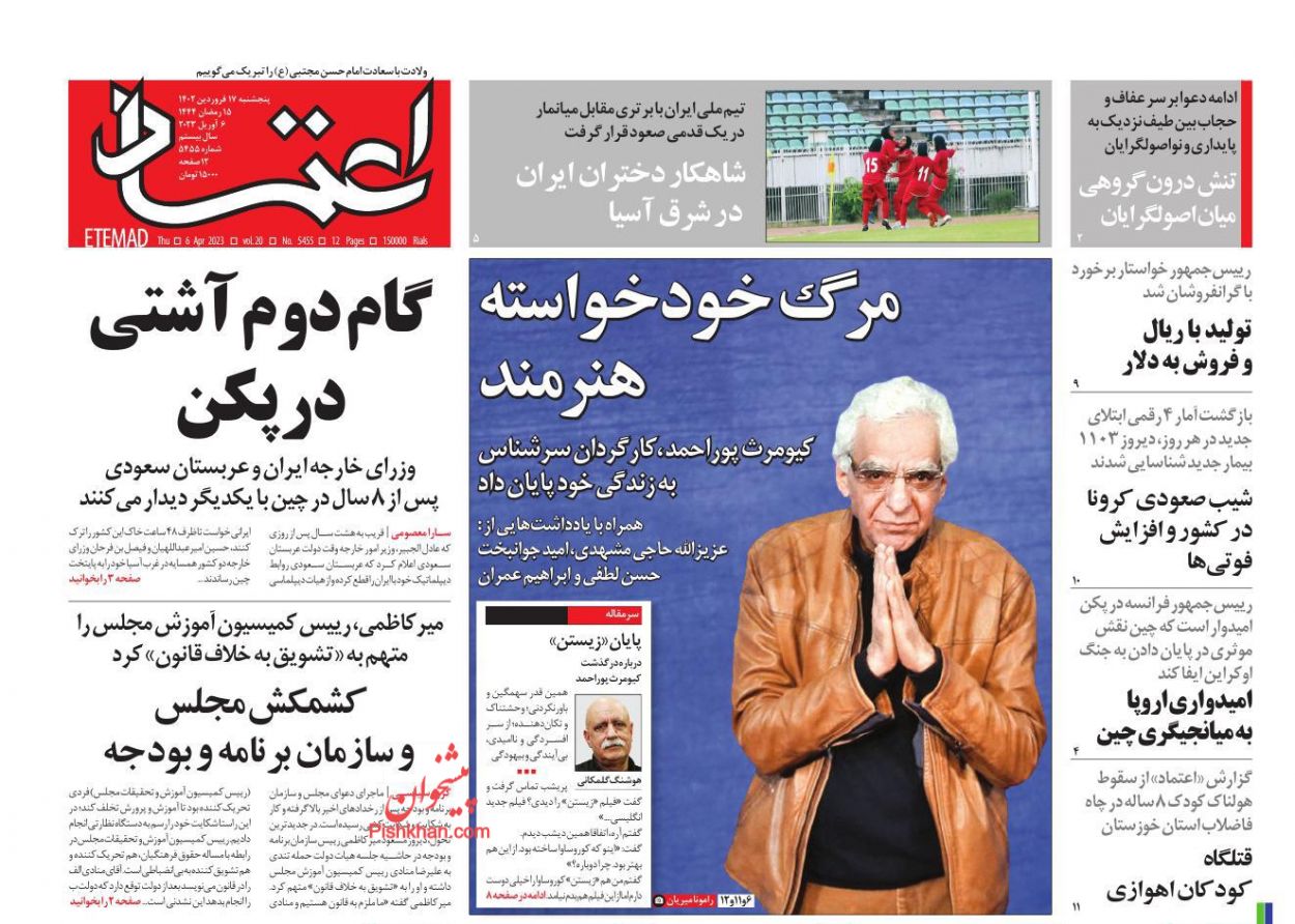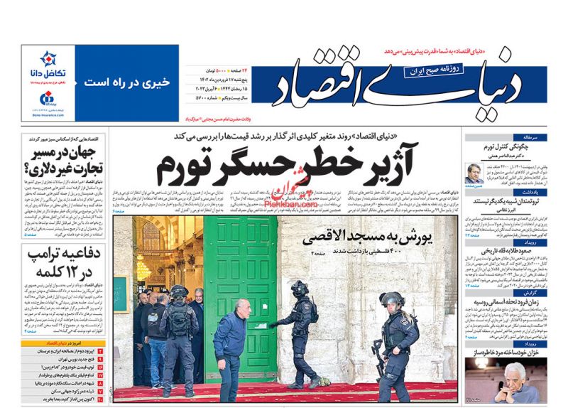 صفحه نخست روزنامه‌های امروز پنجشنبه 17 فروردین 1402