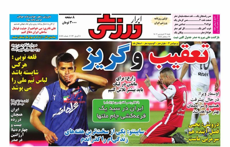 کد: 206098 | 19 فروردین 1402 ساعت 07:56 صفحه نخست روزنامههای امروز شنبه 19 فروردین 1402 صفحه نخست روزنامههای امروز شنبه 19 فروردین 1402 روزنامه های سراسری مطبوعات کشور روزنامه اشتراک گذاری گزارش خطا × اشتراک گذاری مطلب: صفحه نخست روزنامههای امروز شنبه 19 فروردین 1402 فیسبوک اینستاگرام تلگرام ایکس (توییتر) ایتا بله روبیکا × گزارش خطا برای گزارش خطا با پست الکترونیکی: ruydadiran[at]gmail.com در ارتباط باشید