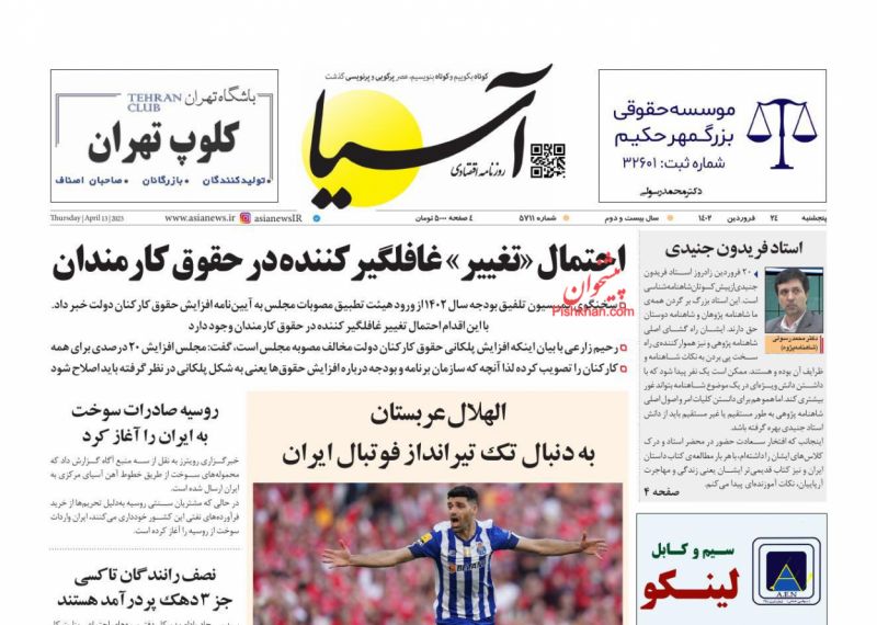 کد: 207113 | 26 فروردین 1402 ساعت 07:20 صفحه نخست روزنامههای امروز شنبه 26 فروردین 1402 صفحه نخست روزنامههای امروز شنبه 26 فروردین 1402 روزنامه های سراسری مطبوعات کشور روزنامه اشتراک گذاری گزارش خطا × اشتراک گذاری مطلب: صفحه نخست روزنامههای امروز شنبه 26 فروردین 1402 فیسبوک اینستاگرام تلگرام ایکس (توییتر) ایتا بله روبیکا × گزارش خطا برای گزارش خطا با پست الکترونیکی: ruydadiran[at]gmail.com در ارتباط باشید