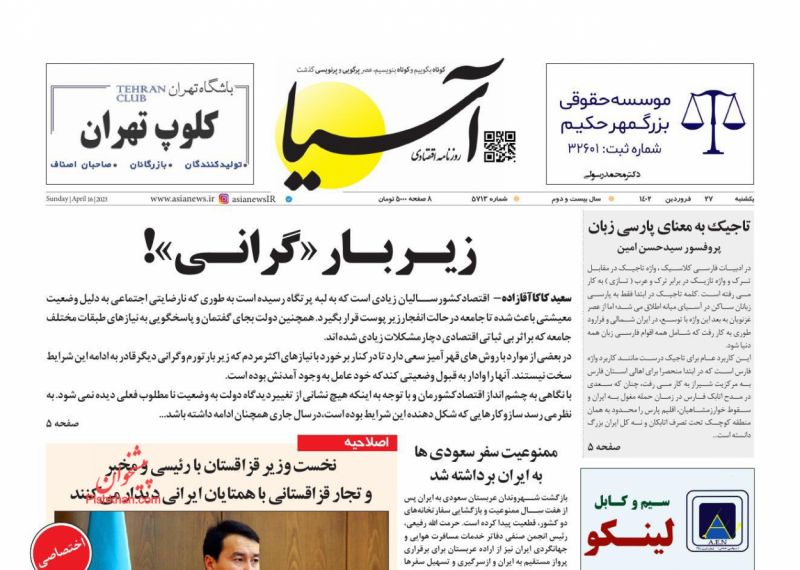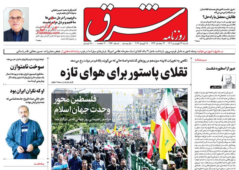 صفحه نخست روزنامه‌های امروز دوشنبه 28 فروردین 1402