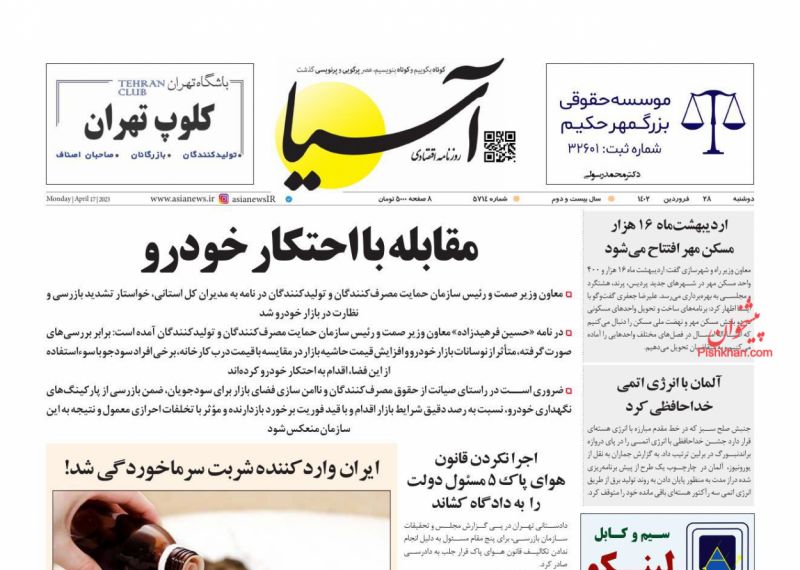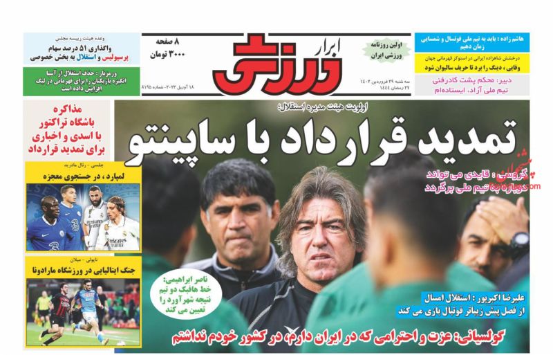 کد: 208274 | 29 فروردین 1402 ساعت 07:17 صفحه نخست روزنامههای امروز سه شنبه 29 فروردین 1402 صفحه نخست روزنامههای امروز سه شنبه 29 فروردین 1402 روزنامه های سراسری مطبوعات کشور روزنامه اشتراک گذاری گزارش خطا × اشتراک گذاری مطلب: صفحه نخست روزنامههای امروز سه شنبه 29 فروردین 1402 فیسبوک اینستاگرام تلگرام ایکس (توییتر) ایتا بله روبیکا × گزارش خطا برای گزارش خطا با پست الکترونیکی: ruydadiran[at]gmail.com در ارتباط باشید