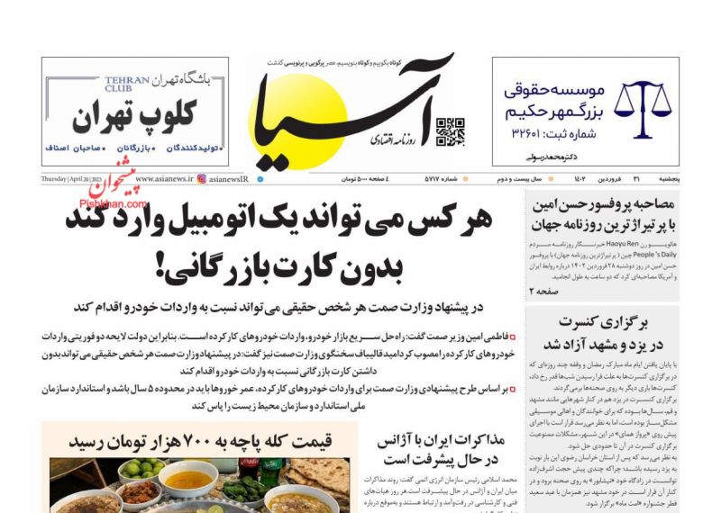 کد: 208795 | 31 فروردین 1402 ساعت 06:45 صفحه نخست روزنامههای امروز پنجشنبه 31 فروردین 1402 صفحه نخست روزنامههای امروز پنجشنبه 31 فروردین 1402 روزنامه های سراسری مطبوعات کشور روزنامه اشتراک گذاری گزارش خطا × اشتراک گذاری مطلب: صفحه نخست روزنامههای امروز پنجشنبه 31 فروردین 1402 فیسبوک اینستاگرام تلگرام ایکس (توییتر) ایتا بله روبیکا × گزارش خطا برای گزارش خطا با پست الکترونیکی: ruydadiran[at]gmail.com در ارتباط باشید