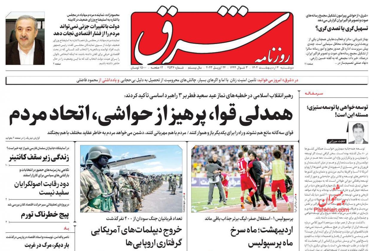 کد: 209042 | 04 اردیبهشت 1402 ساعت 06:11 صفحه نخست روزنامههای امروز دوشنبه 4 اردیبهشت 1402 صفحه نخست روزنامههای امروز دوشنبه 4 اردیبهشت 1402 روزنامه های سراسری مطبوعات کشور روزنامه اشتراک گذاری گزارش خطا × اشتراک گذاری مطلب: صفحه نخست روزنامههای امروز دوشنبه 4 اردیبهشت 1402 فیسبوک اینستاگرام تلگرام ایکس (توییتر) ایتا بله روبیکا × گزارش خطا برای گزارش خطا با پست الکترونیکی: ruydadiran[at]gmail.com در ارتباط باشید