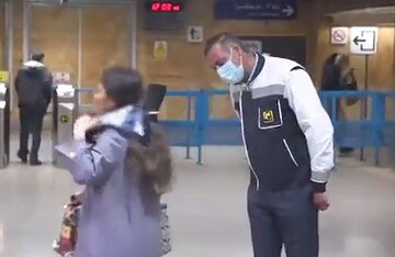 - نکته قابل توجه متصدی مترو است که در قاب نزدیک و بسته دوربین، ماسک بر صورت دارد تا چهرهاش شناخته نشود.
