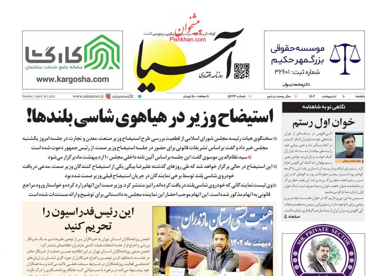 کد: 210624 | 10 اردیبهشت 1402 ساعت 05:49 صفحه نخست روزنامههای امروز یکشنبه 10 اردیبهشت 1402 صفحه نخست روزنامههای امروز یکشنبه 10 اردیبهشت 1402 روزنامه های سراسری مطبوعات کشور روزنامه اشتراک گذاری گزارش خطا × اشتراک گذاری مطلب: صفحه نخست روزنامههای امروز یکشنبه 10 اردیبهشت 1402 فیسبوک اینستاگرام تلگرام ایکس (توییتر) ایتا بله روبیکا × گزارش خطا برای گزارش خطا با پست الکترونیکی: ruydadiran[at]gmail.com در ارتباط باشید