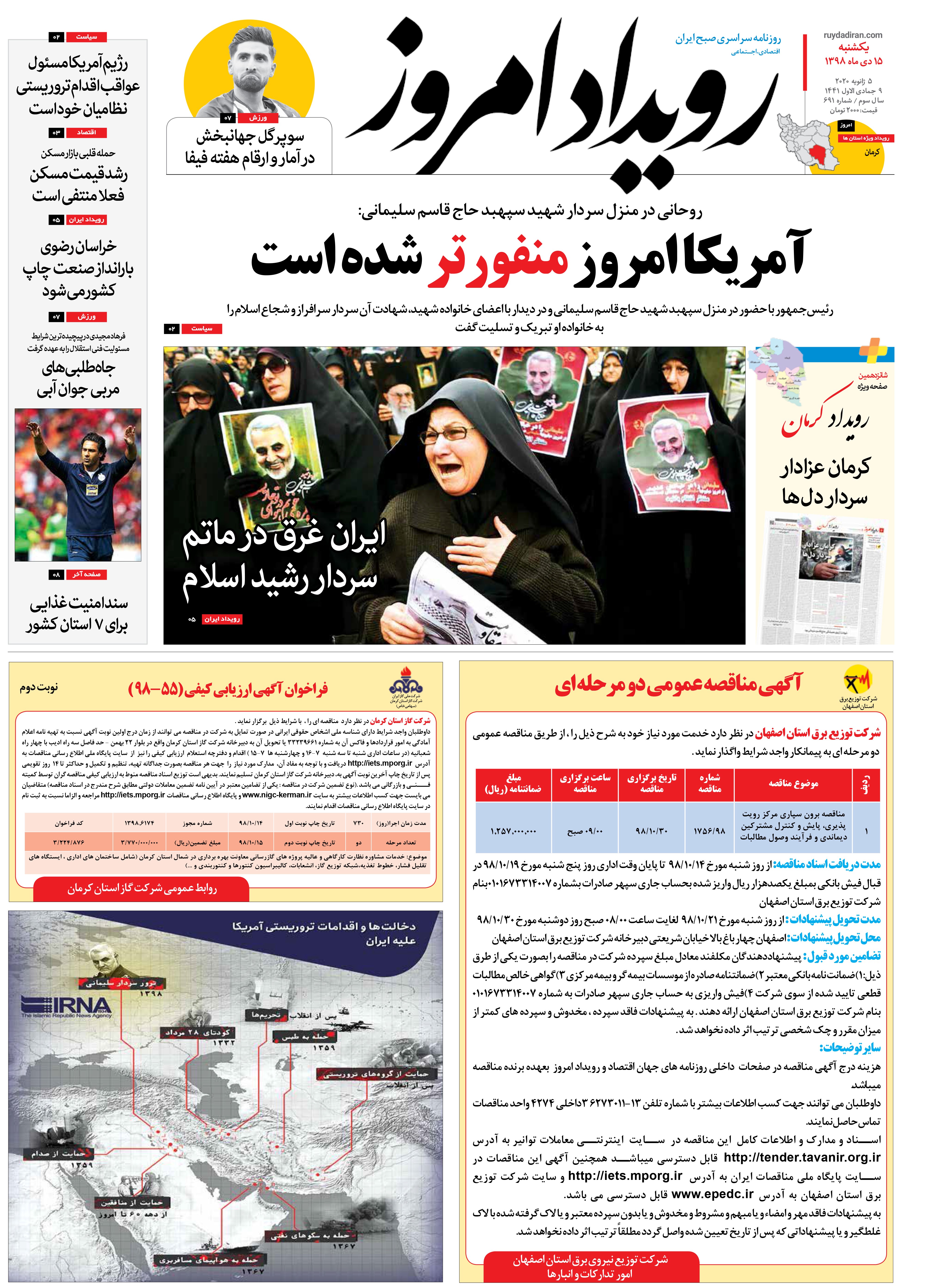 روزنامه رویداد امروز یکشنبه 15 دی 1398
