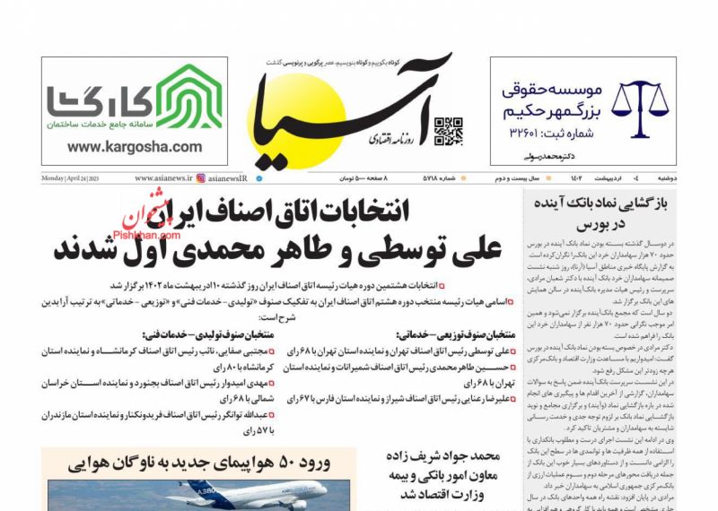 کد: 211689 | 14 اردیبهشت 1402 ساعت 05:40 صفحه نخست روزنامههای امروز پنجشنبه 14 اردیبهشت 1402 صفحه نخست روزنامههای امروز پنجشنبه 14 اردیبهشت 1402 روزنامه های سراسری مطبوعات کشور روزنامه اشتراک گذاری گزارش خطا × اشتراک گذاری مطلب: صفحه نخست روزنامههای امروز پنجشنبه 14 اردیبهشت 1402 فیسبوک اینستاگرام تلگرام ایکس (توییتر) ایتا بله روبیکا × گزارش خطا برای گزارش خطا با پست الکترونیکی: ruydadiran[at]gmail.com در ارتباط باشید