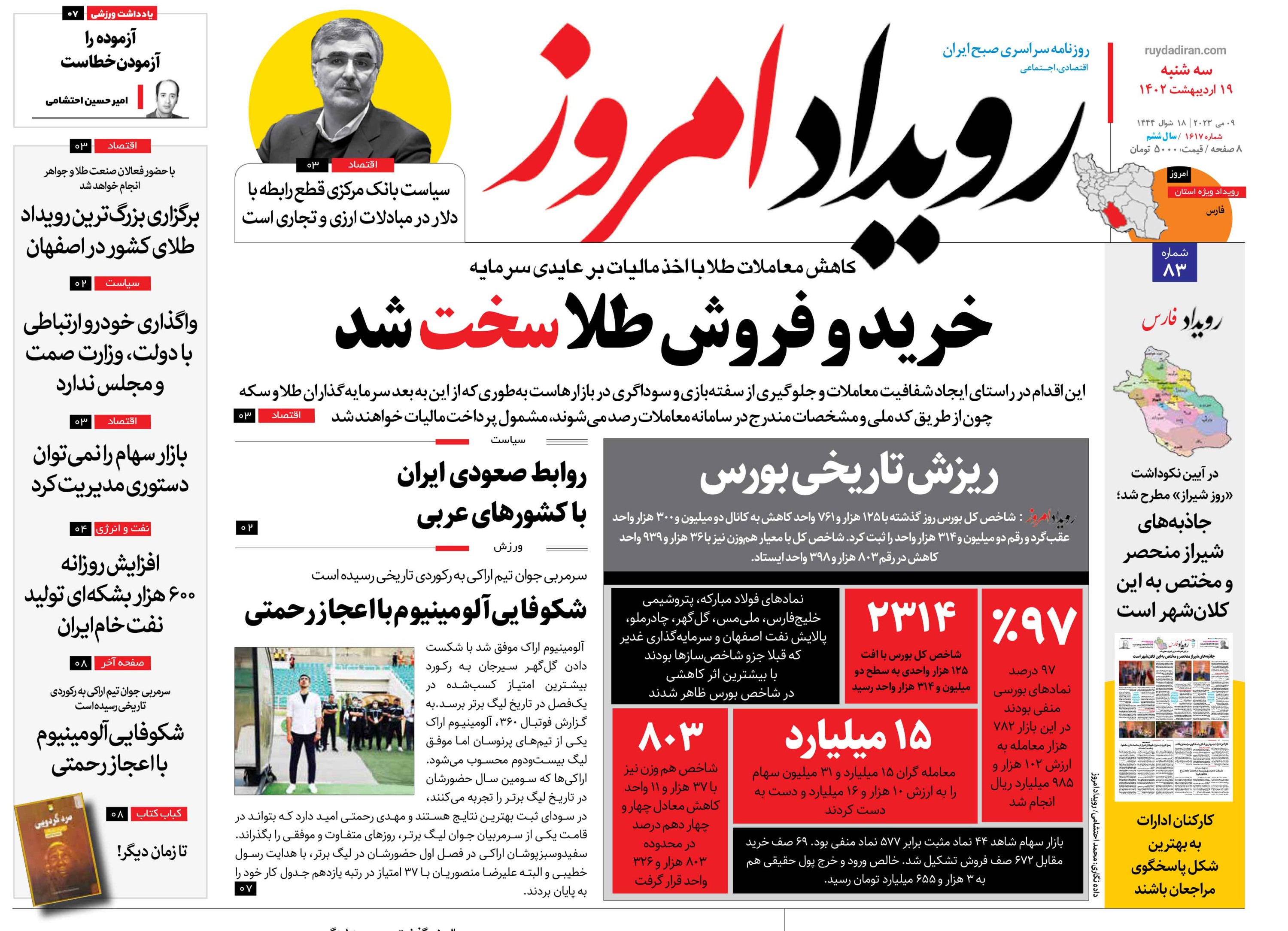 کد: 212973 | 19 اردیبهشت 1402 ساعت 00:00 روزنامه رویداد امروز سه شنبه ۱۹ اردیبهشت ۱۴۰۲ اشتراک گذاری گزارش خطا × اشتراک گذاری مطلب: روزنامه رویداد امروز سه شنبه ۱۹ اردیبهشت ۱۴۰۲ فیسبوک اینستاگرام تلگرام ایکس (توییتر) ایتا بله روبیکا × گزارش خطا برای گزارش خطا با پست الکترونیکی: ruydadiran[at]gmail.com در ارتباط باشید